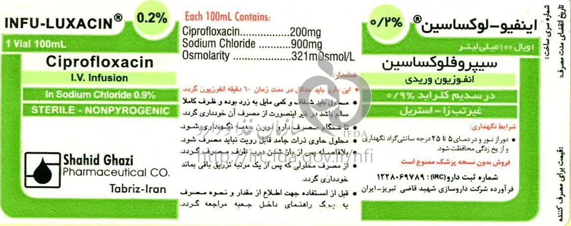 اینفیو - لوکساسین محلول تزریقی داخل وریدی 2 mg/1mL 100MILLILITER