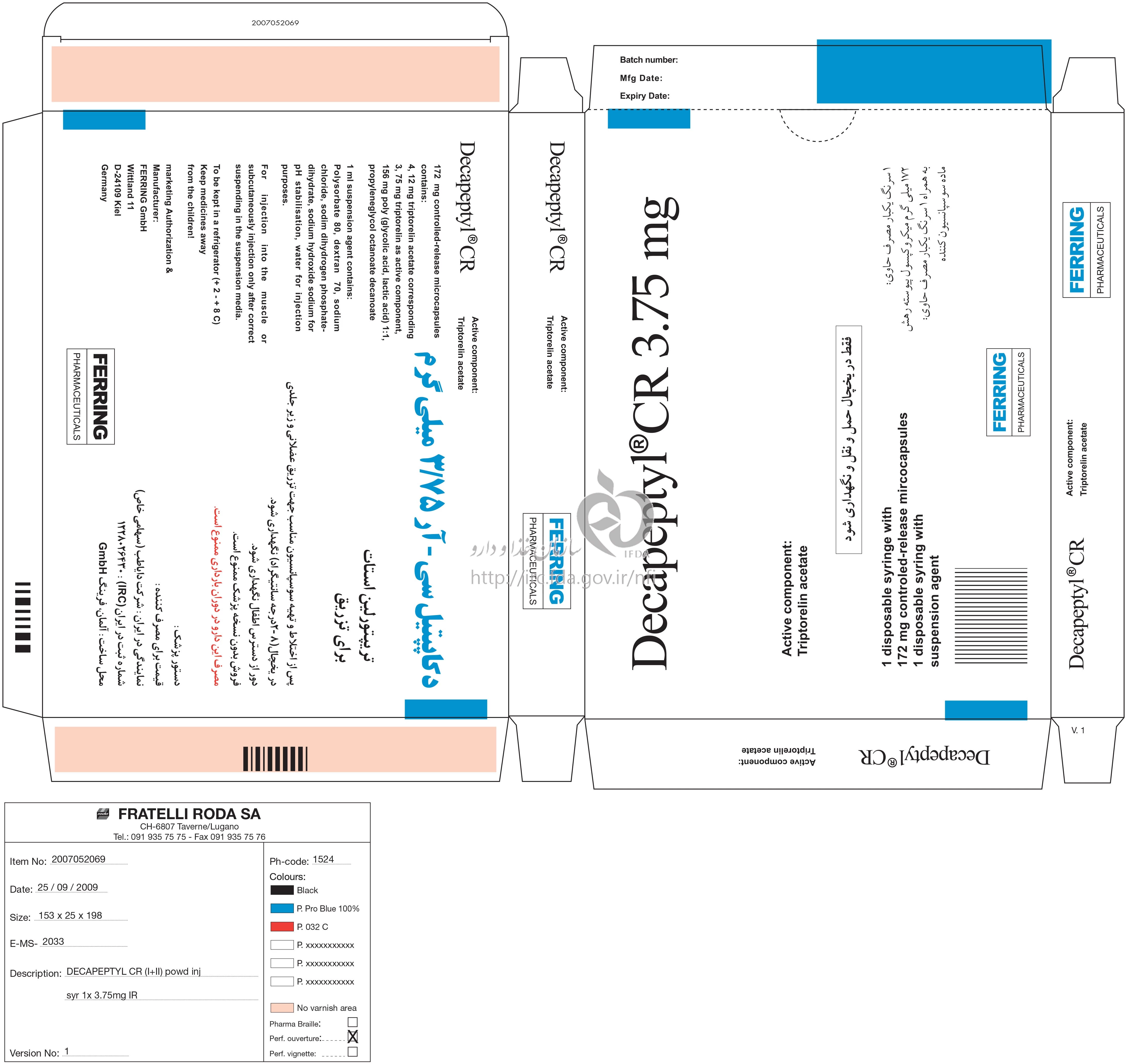 دکترها دکاپپتیل پودر لیوفیلیزه سوسپانسیون تزریقی آهسته رهش پرنترال 3.75 mg