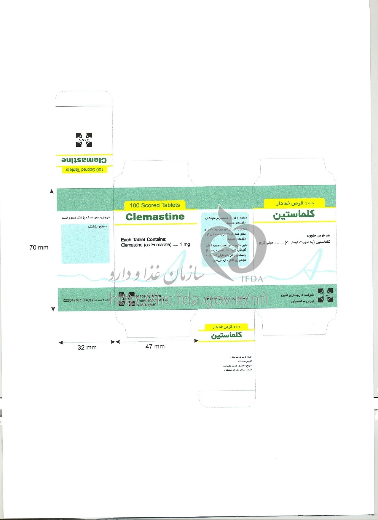 كلماستين در درمان علامتي رينيت آلرژیک، التهاب آلرژیک ملتحمه، خارش ناشي از واكنش هاي آلرژیک و كهير و به عنوان درمان كمكي شوك آنافيلاكتيك به كار می رود. اين دارو اثرات آنتي كولينرژيك نيز دارد.