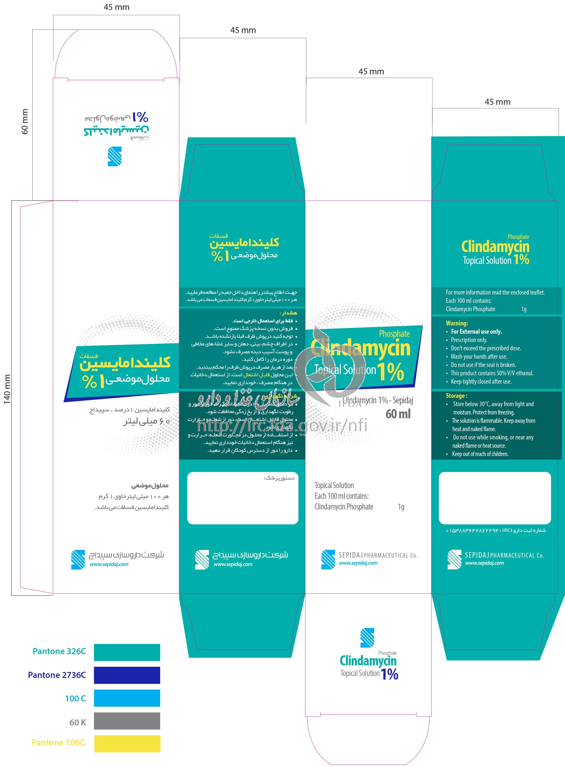کلیندامایسین - سپیداج محلول موضعی 10 mg/1mL 60MILLILITER