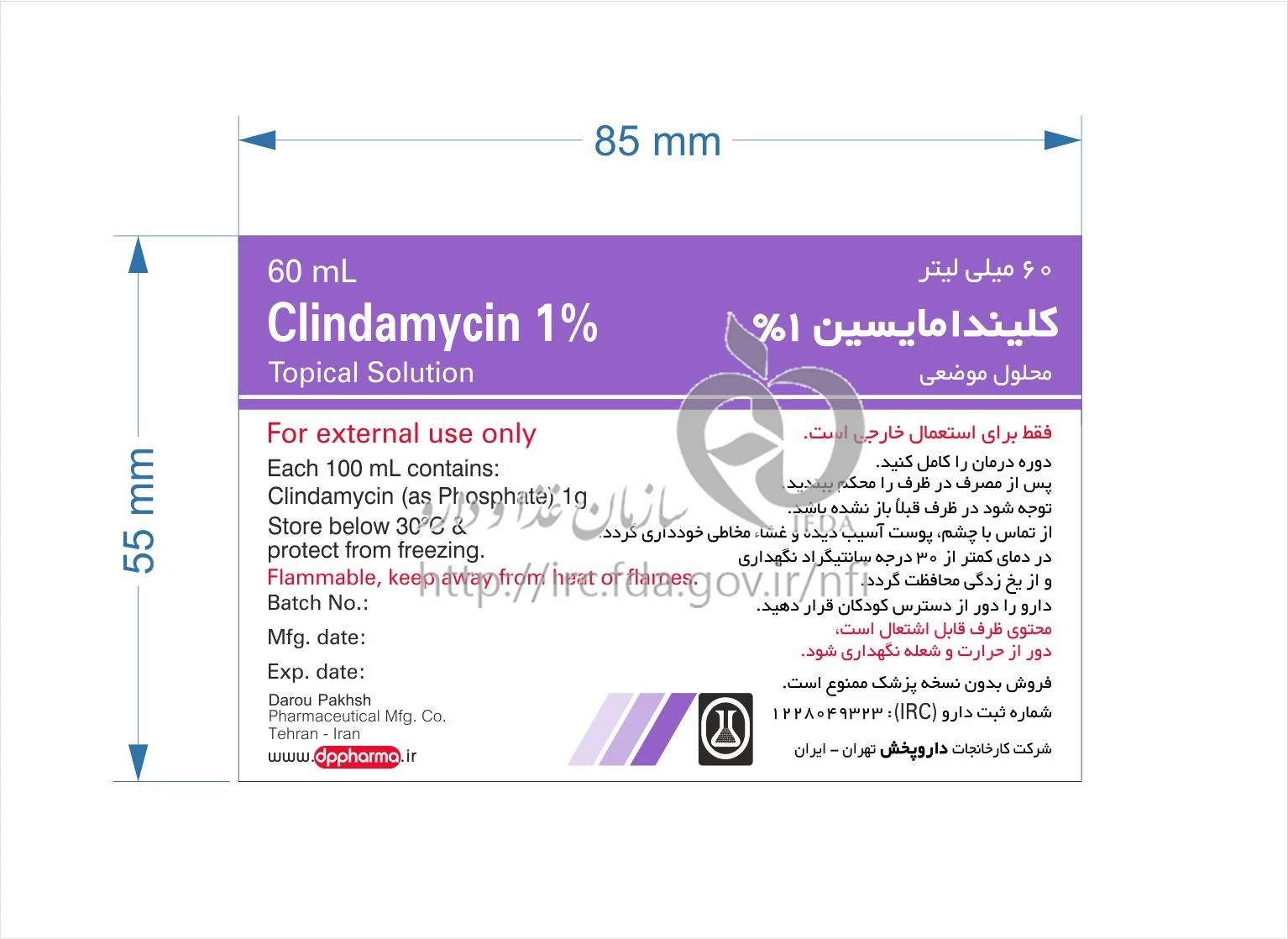 کلیندامایسین محلول موضعی 10 mg/1mL 60MILLILITER