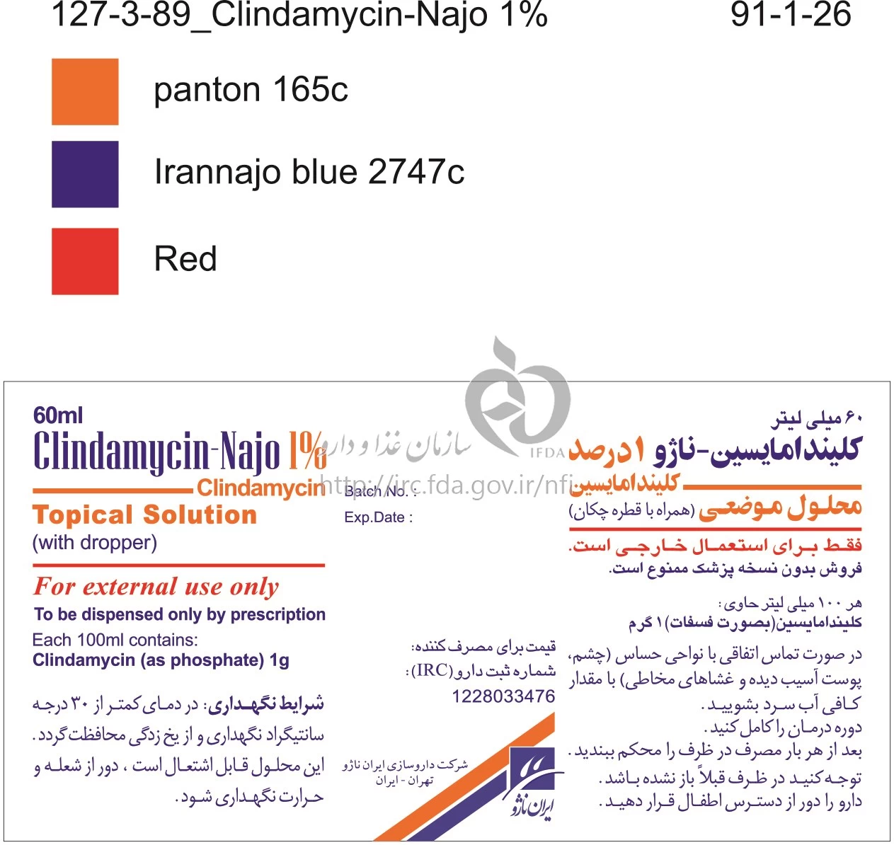 کلیندامایسین - ناژو محلول موضعی 10 mg/1mL 60MILLILITER