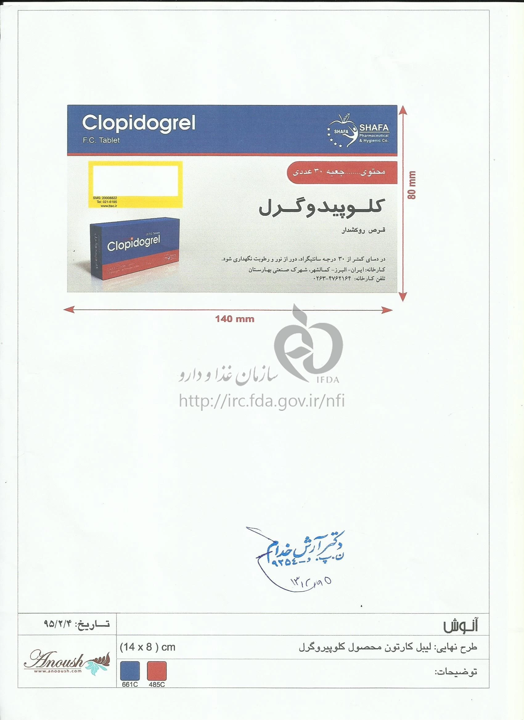 کلوپیدوگرل - شفا قرص خوراکی 75 mg