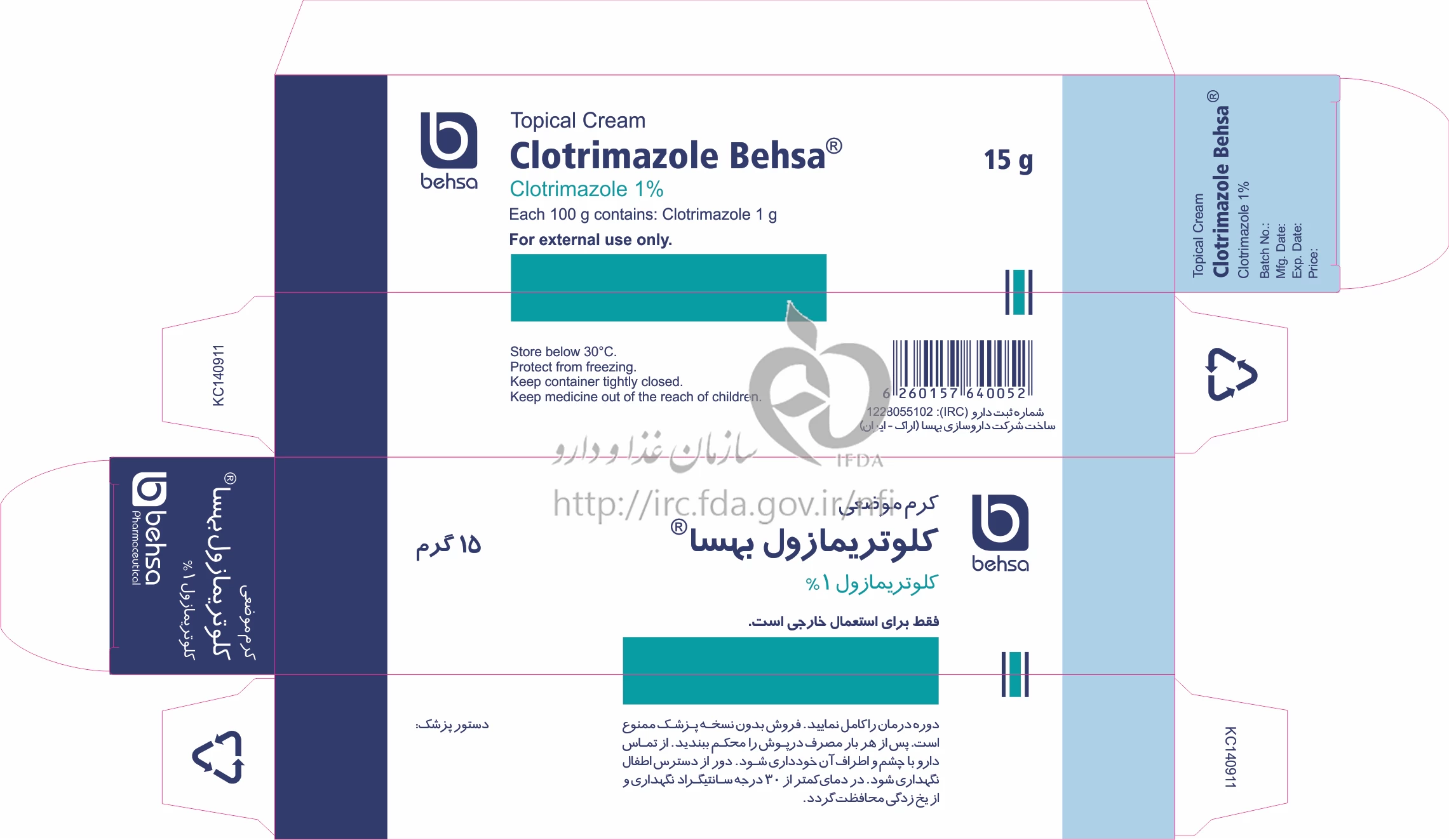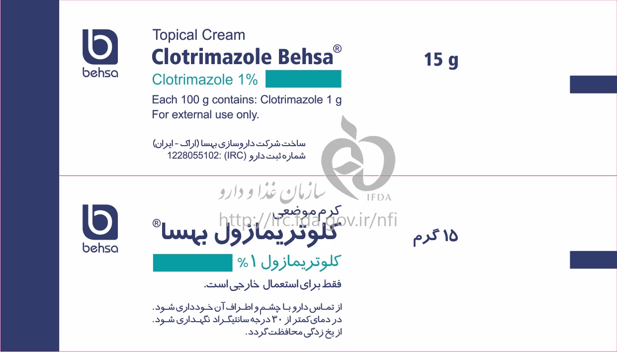 کلوتریمازول بهسا کرم موضعی 1 % 15GRAM