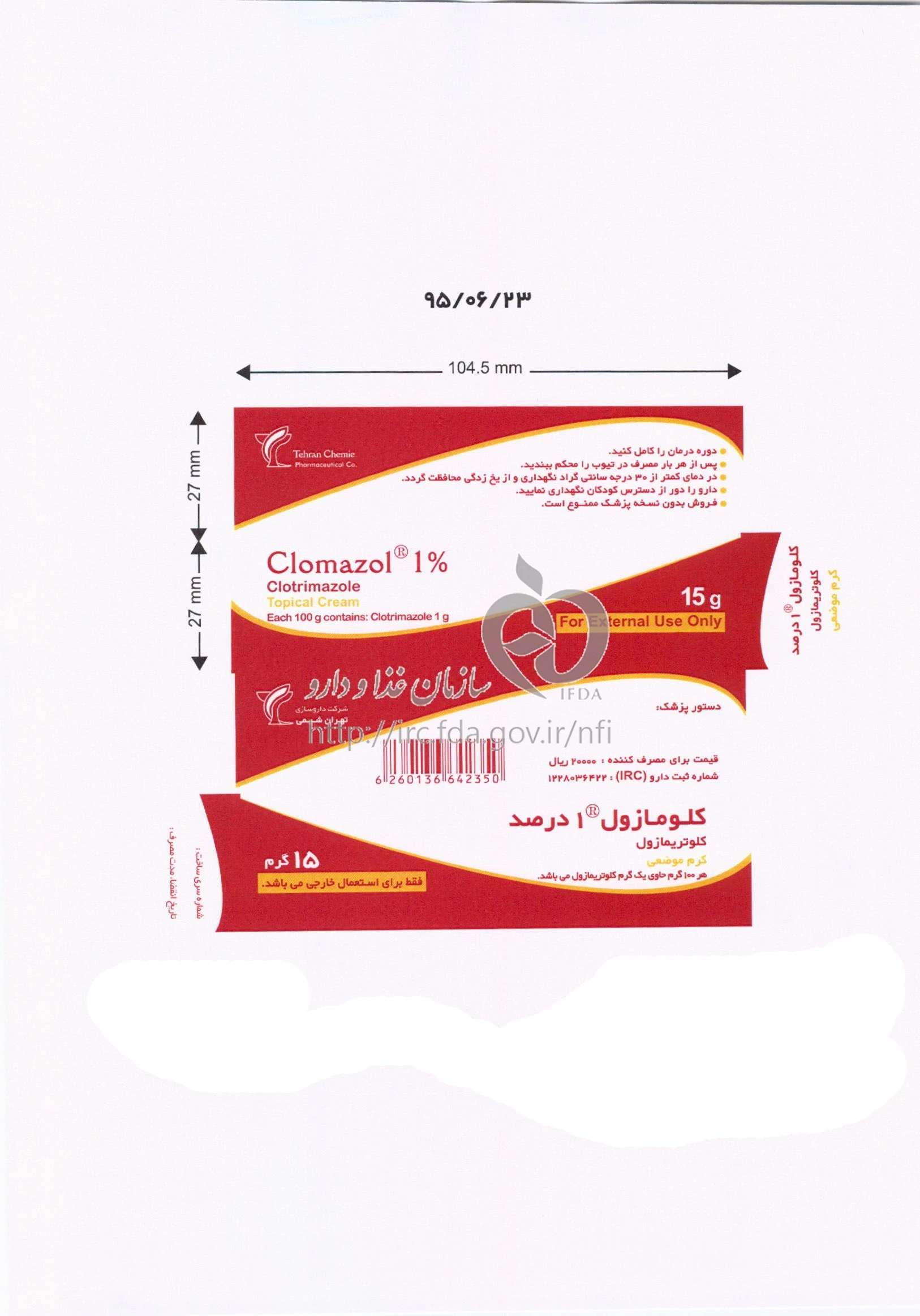 کلومازول کرم موضعی 1 % 15GRAM