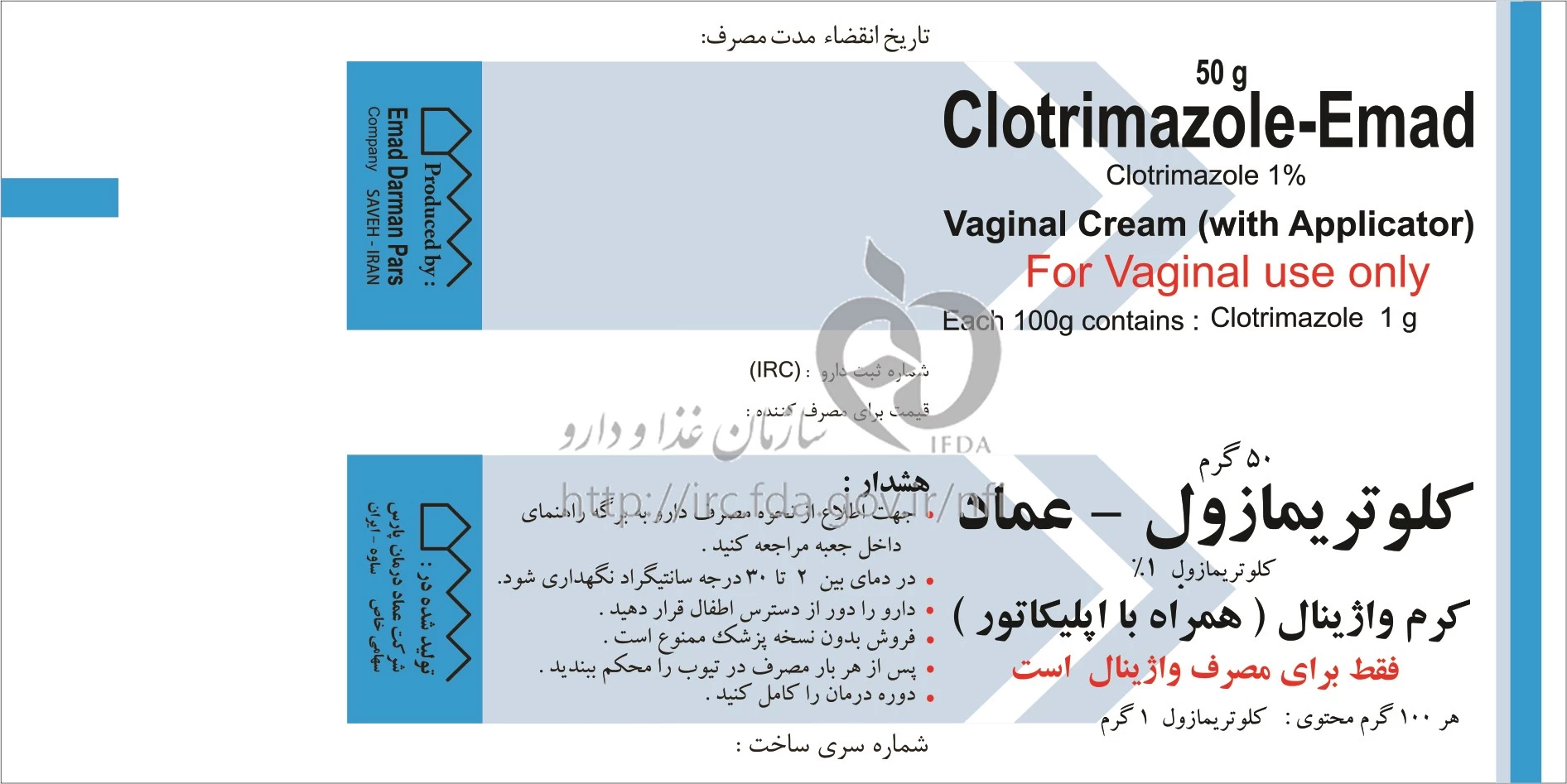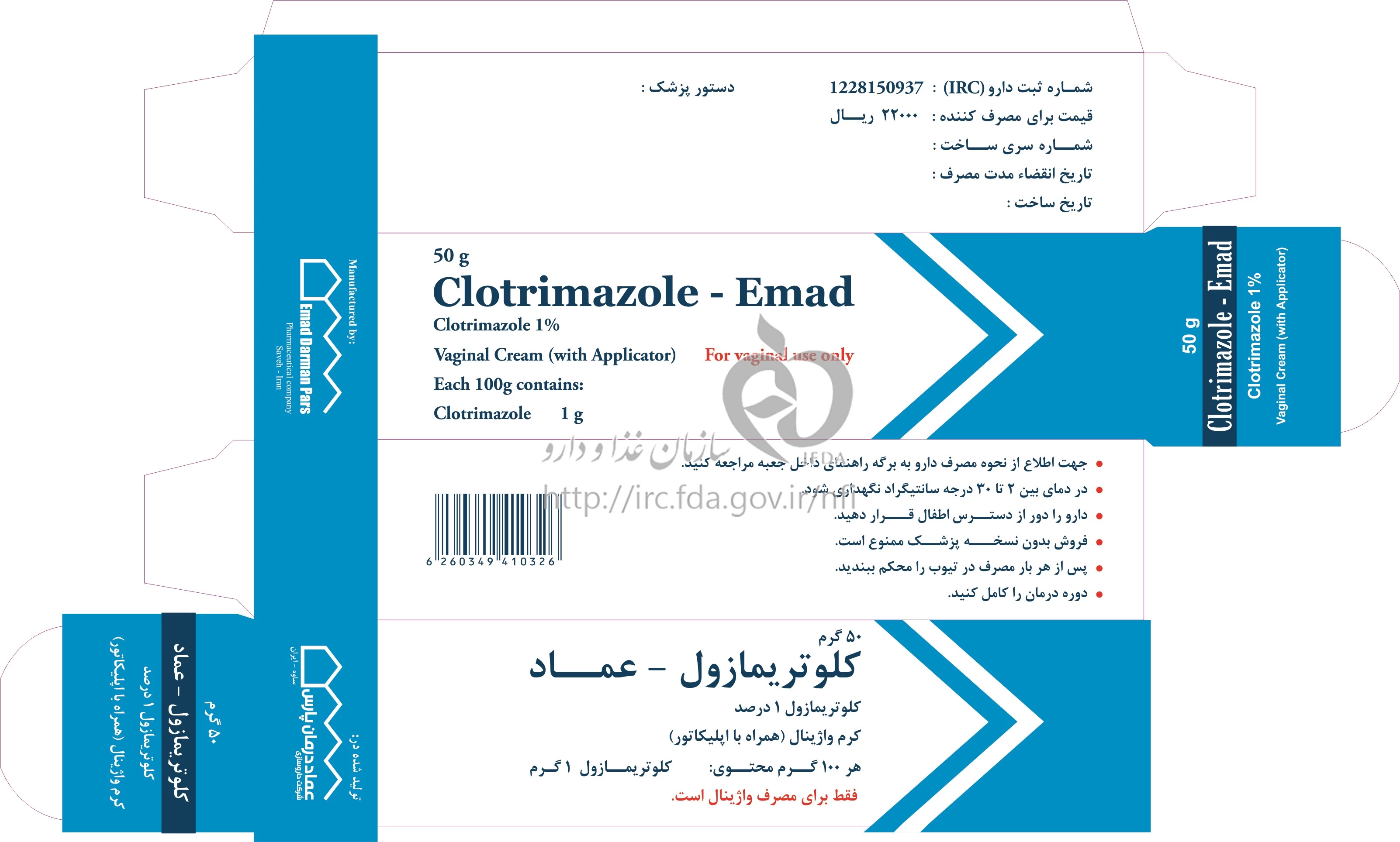 کلوتریمازول - عماد کرم واژینال 1 % 50GRAM