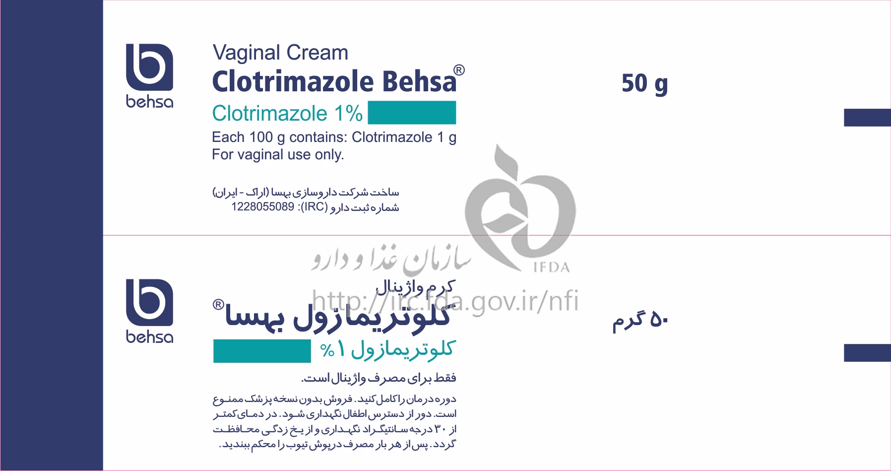 کلوتریمازول بهسا کرم واژینال 1 % 50GRAM