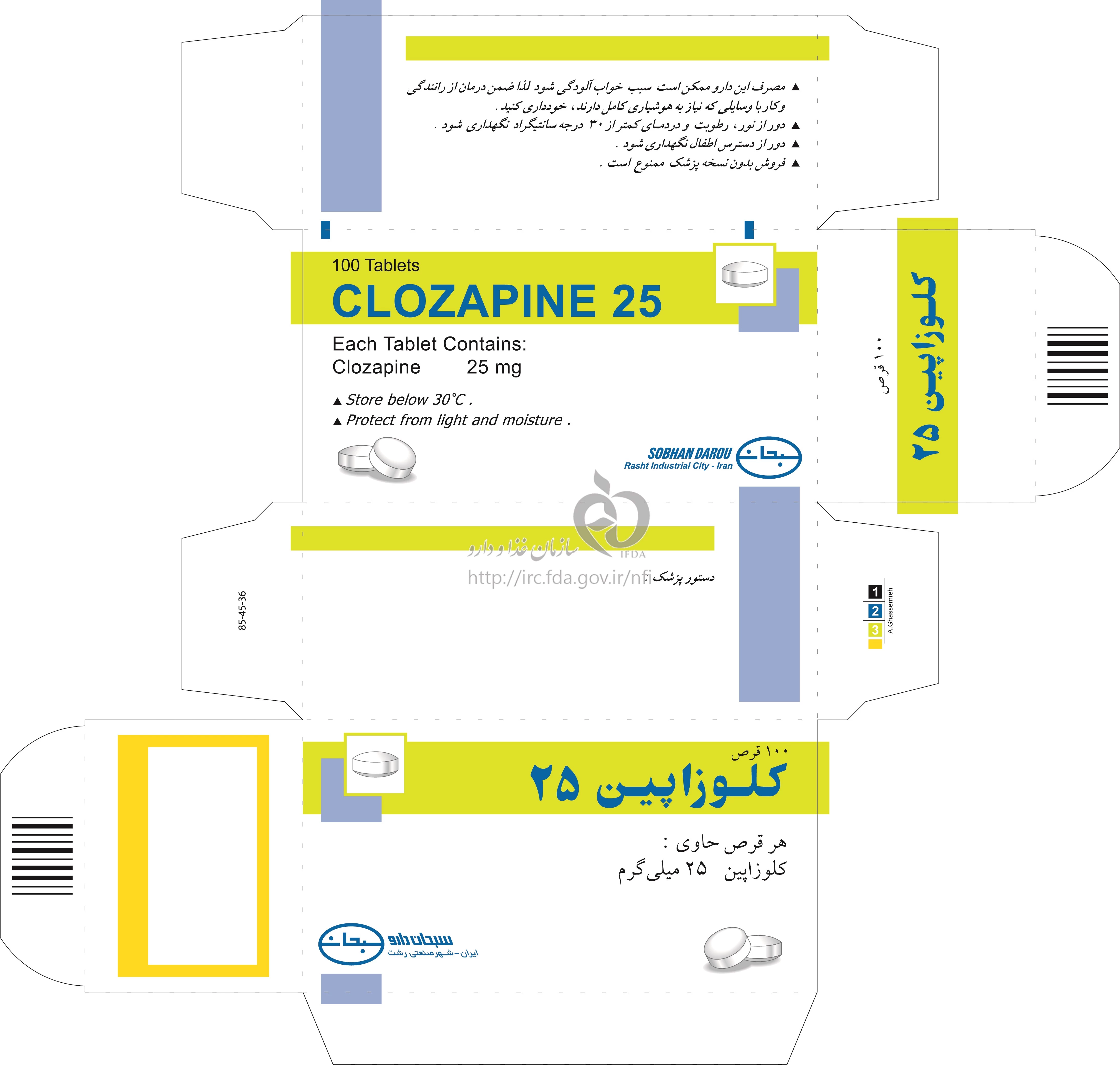 کلوزاپین قرص خوراکی 25 mg
