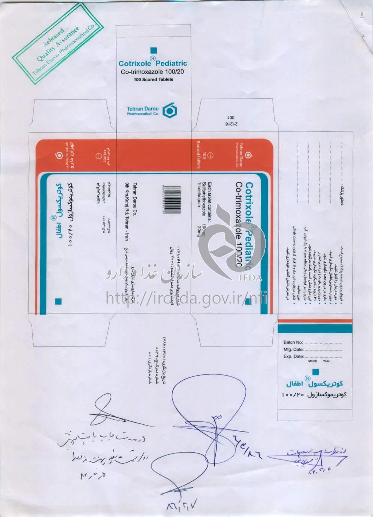 کوتریکسول قرص خوراکی 100 mg/20 mg