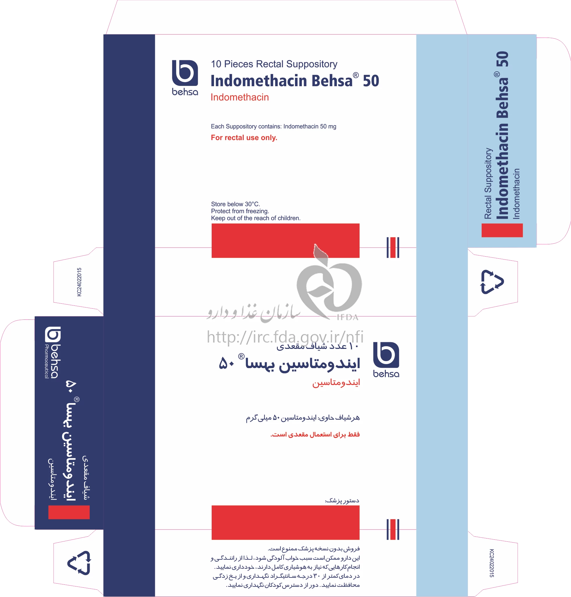 ایندومتاسین بهسا شیاف مقعدی 50 mg