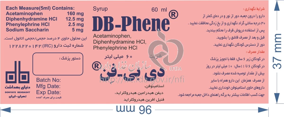 دی بی - فن شربت خوراکی 160 mg/12.5 mg/2.5 mg/5mL 60MILLILITER