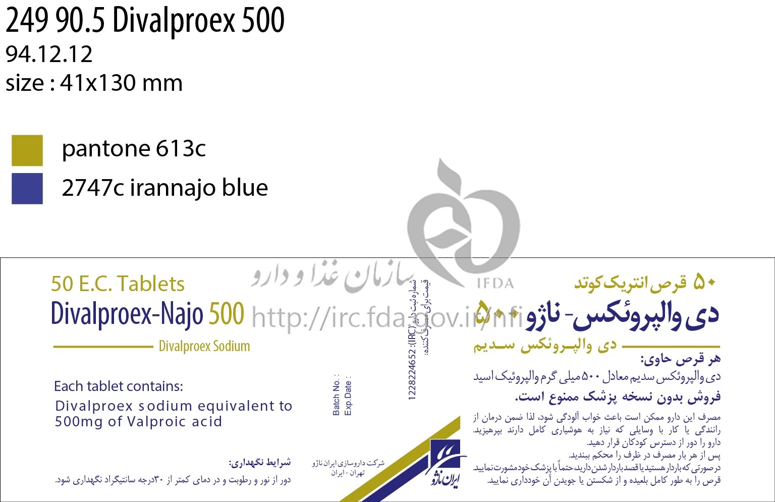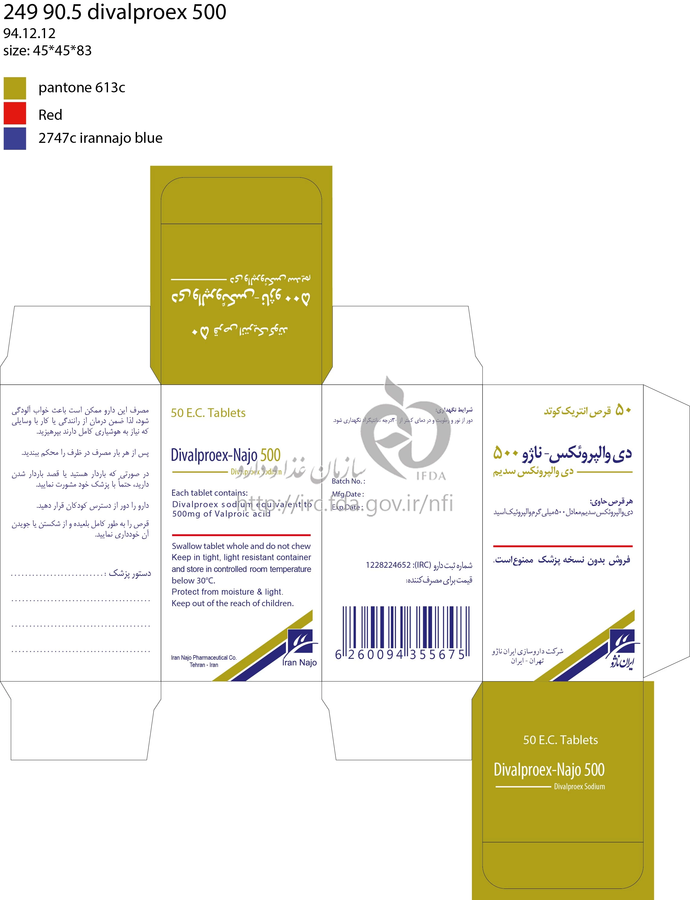 دی والپروئکس - ناژو قرص انتریک کوتد خوراکی 500 mg