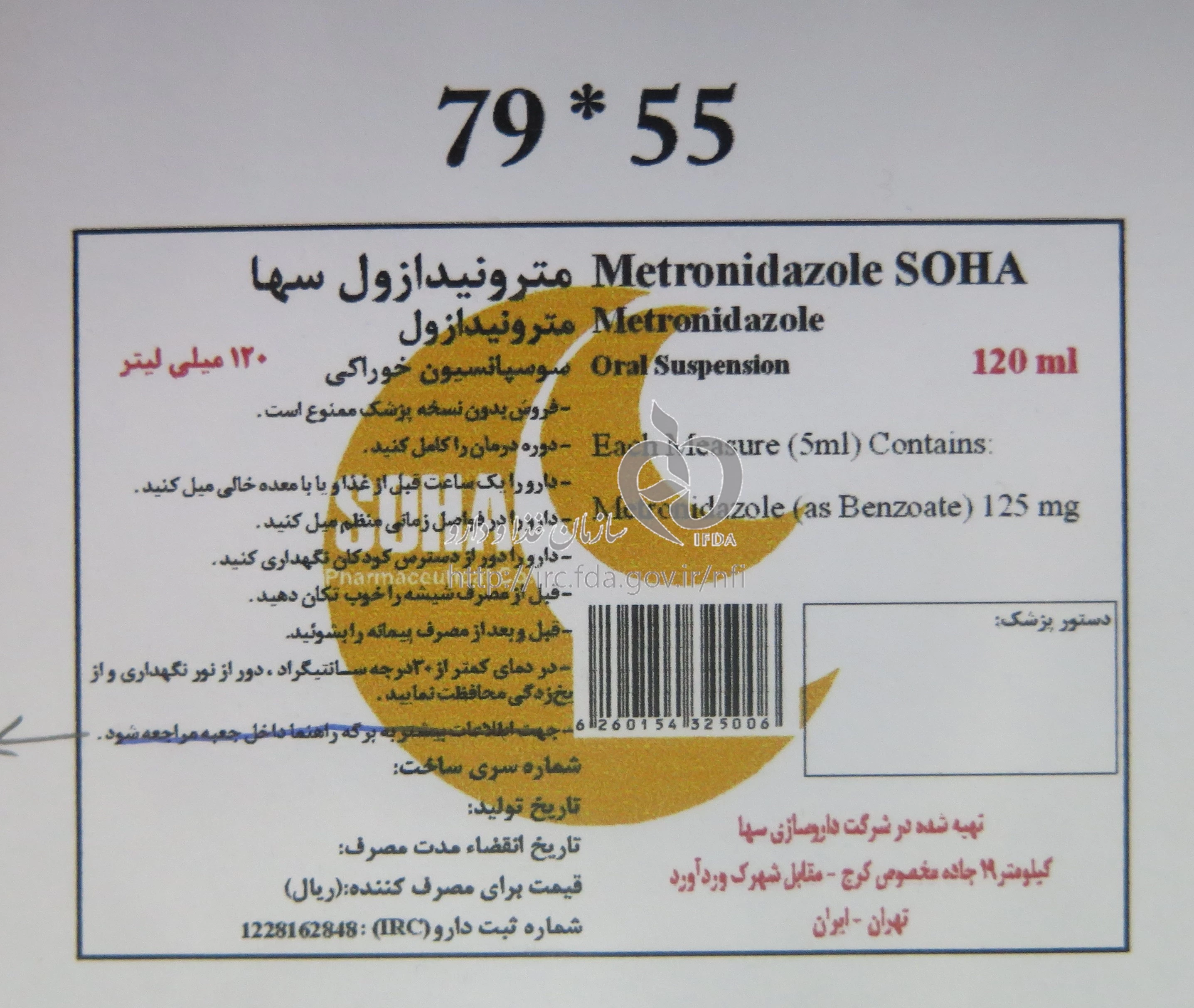 مترونیدارزول سها سوسپانسیون خوراکی 125 mg/5mL 120MILLILITER