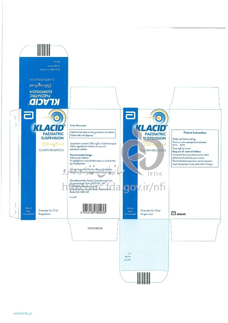 کلاسید پودر برای تهیه سوسپانسیون خوراکی 250 mg/5 mL 60MILLILITER