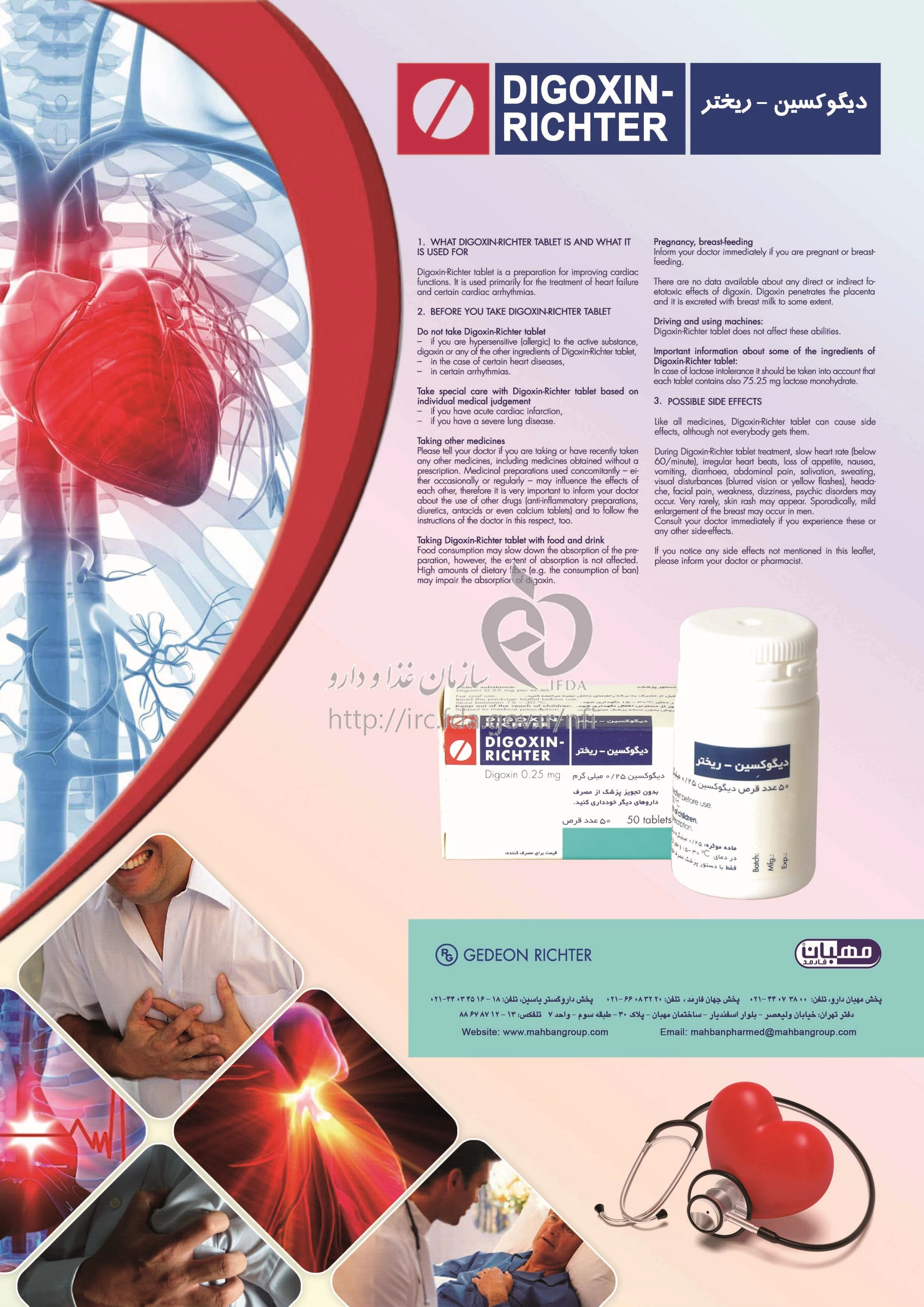موارد مصرف دیگوکسین - ریختر قرص خوراکی 0.25 mg