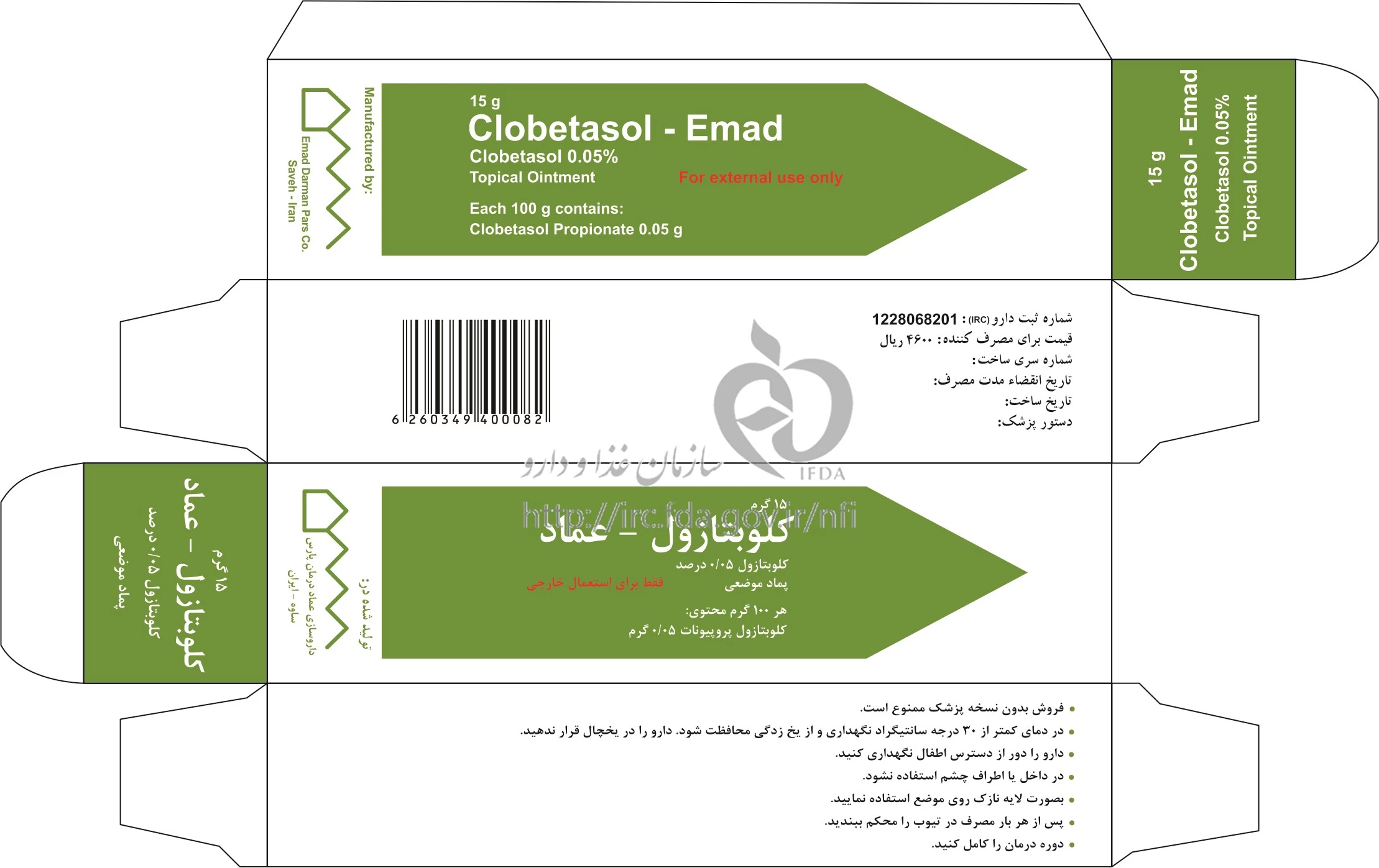 کلوبتازول - عماد پماد موضعی 0.05 % 15GRAM