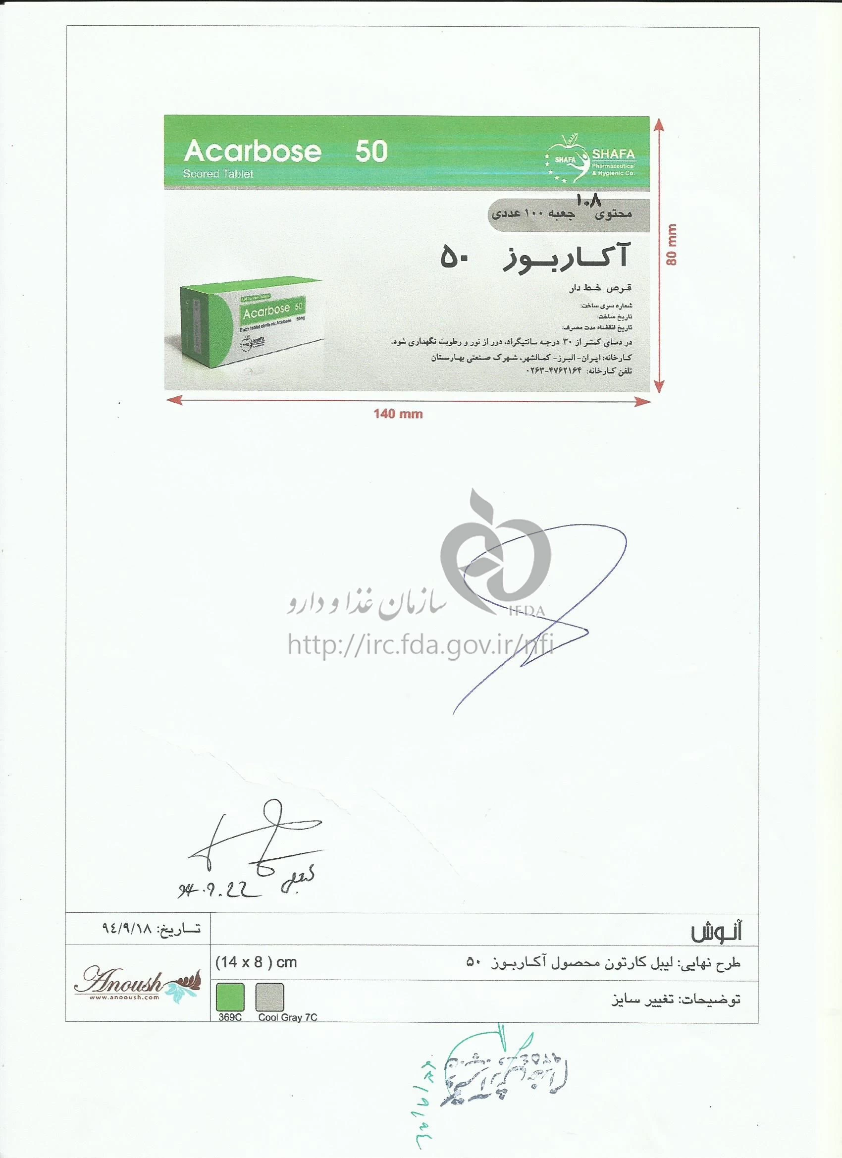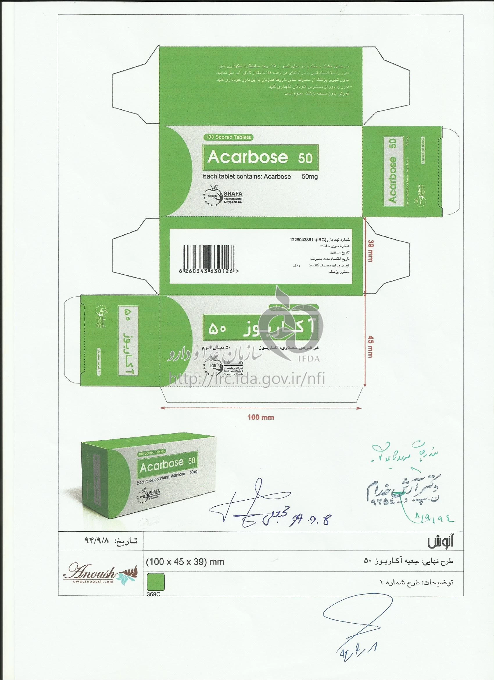 آکاربوز - شفا قرص خوراکی 50 mg
