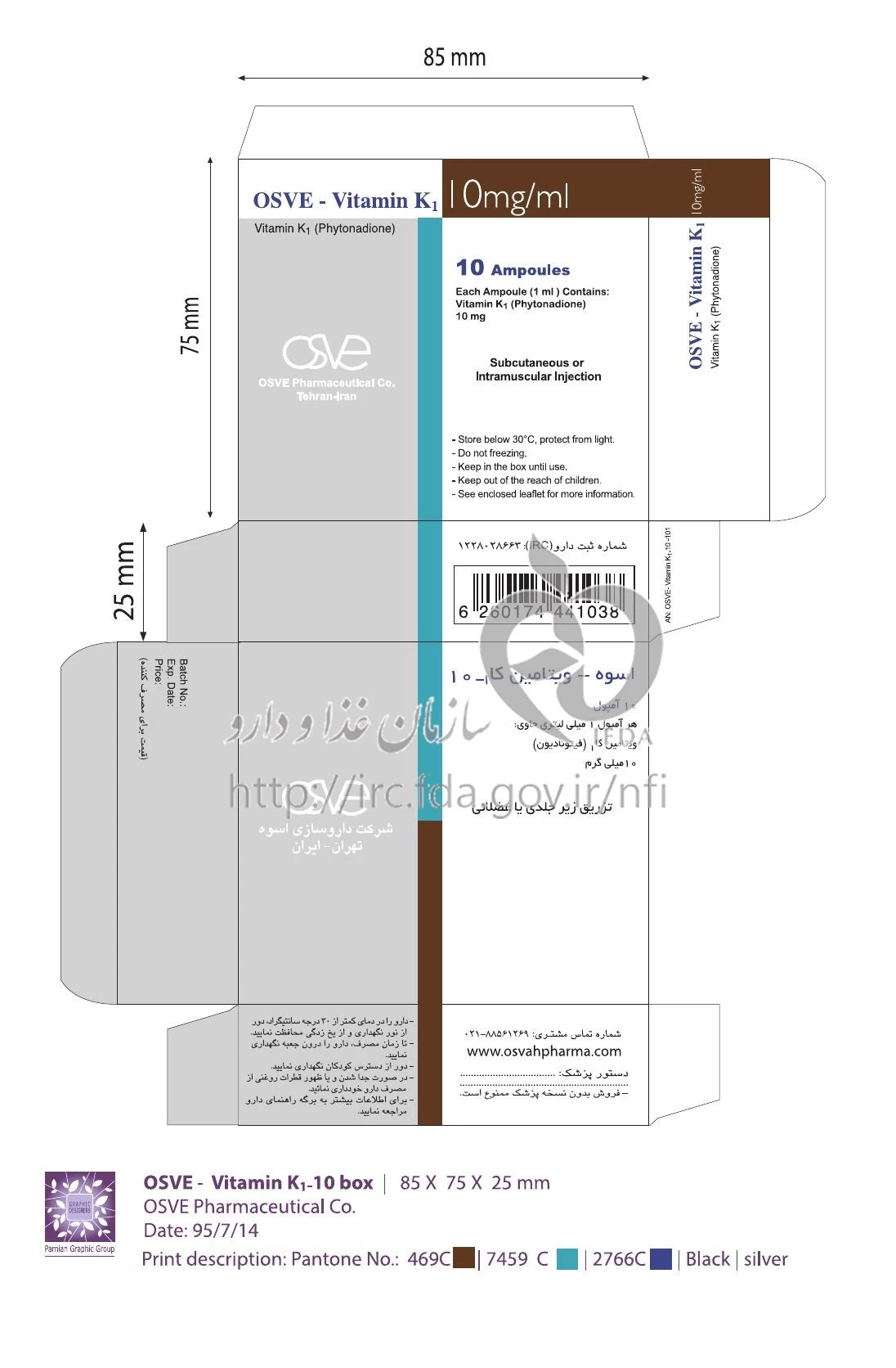 اسوه - ویتامین کا1 تزریقی پرنترال 10 mg/1mL