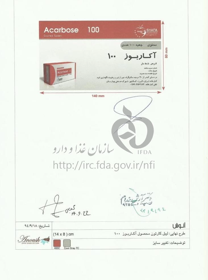 لیست ویدیو ها آکاربوز - شفا قرص خوراکی 100 mg