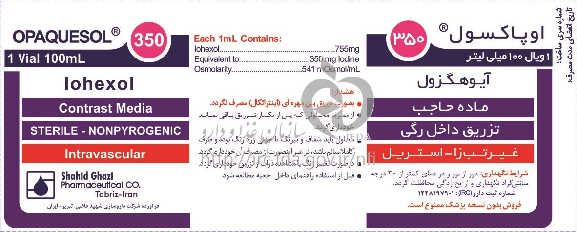 دکترها اوپاکسول تزریقی پرنترال 350 mg/1mL 100MILLILITER