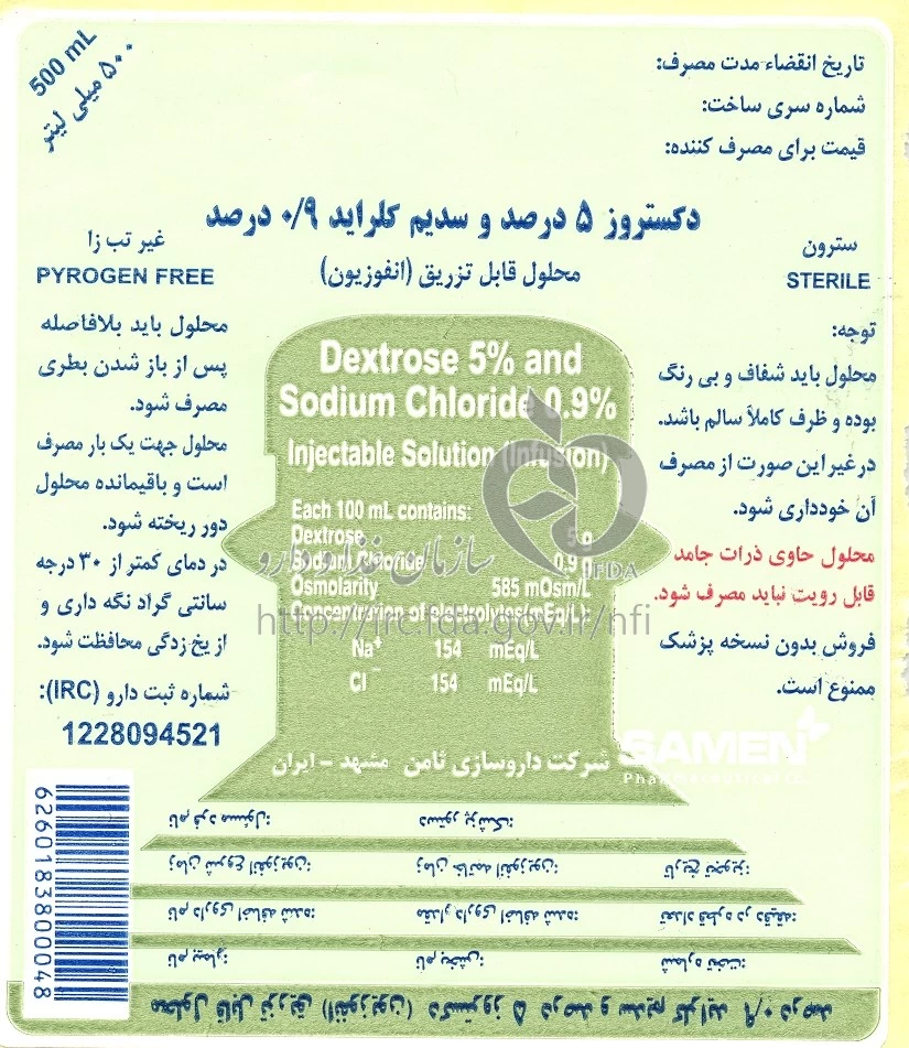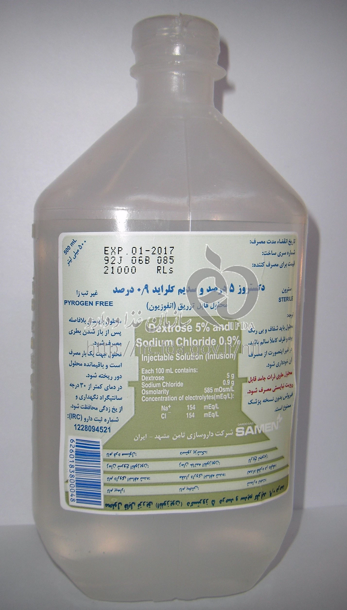 دکستروز/سدیم کلراید محلول تزریقی داخل وریدی 5 %/0.9 % 500MILLILITER