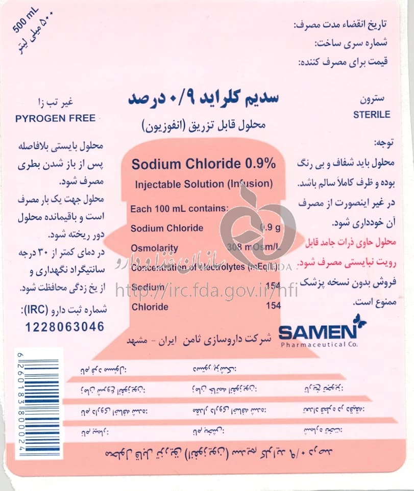 سدیم کلراید محلول تزریقی پرنترال 0.9 % 500MILLILITER