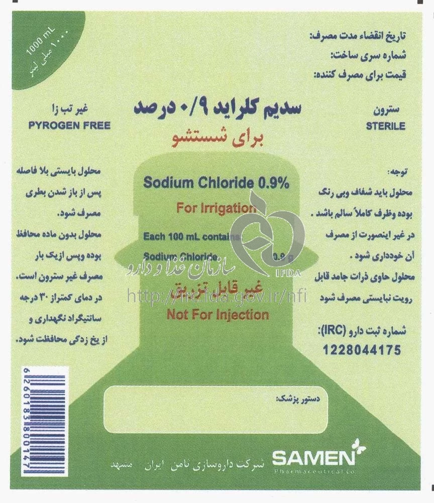 سدیم کلراید محلول جهت شستشو 0.9 % 1000MILLILITER
