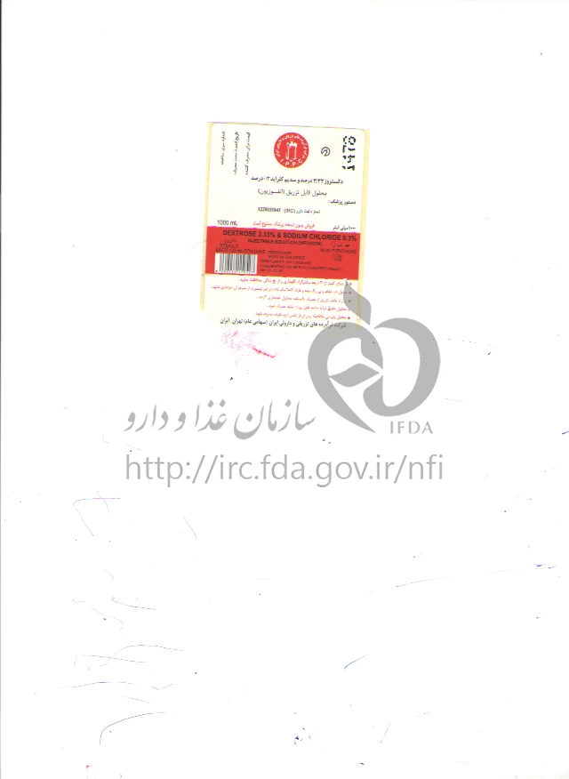 دکستروز/سدیم کلراید محلول تزریقی داخل وریدی 3.33 %/0.3 % 1000MILLILITER