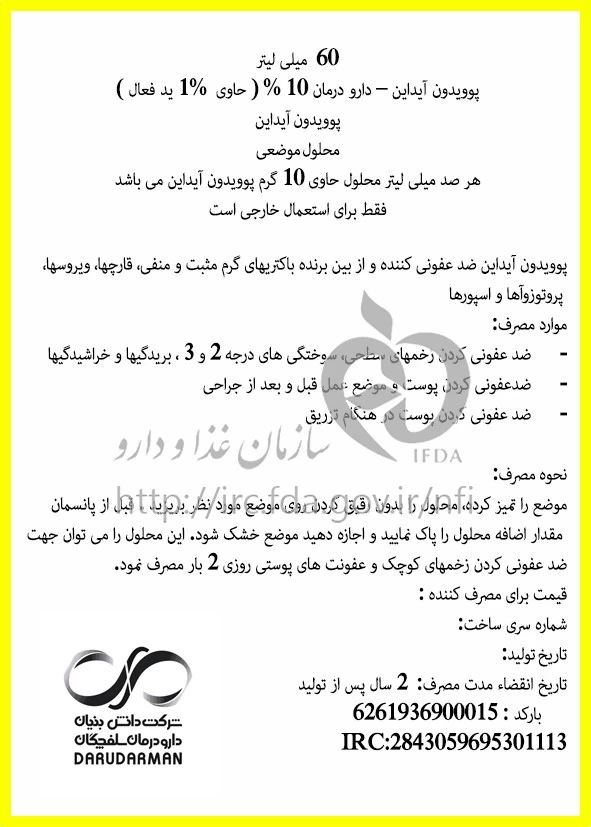 پوویدون آیداین - دارو درمان محلول موضعی 10 % 60MILLILITER