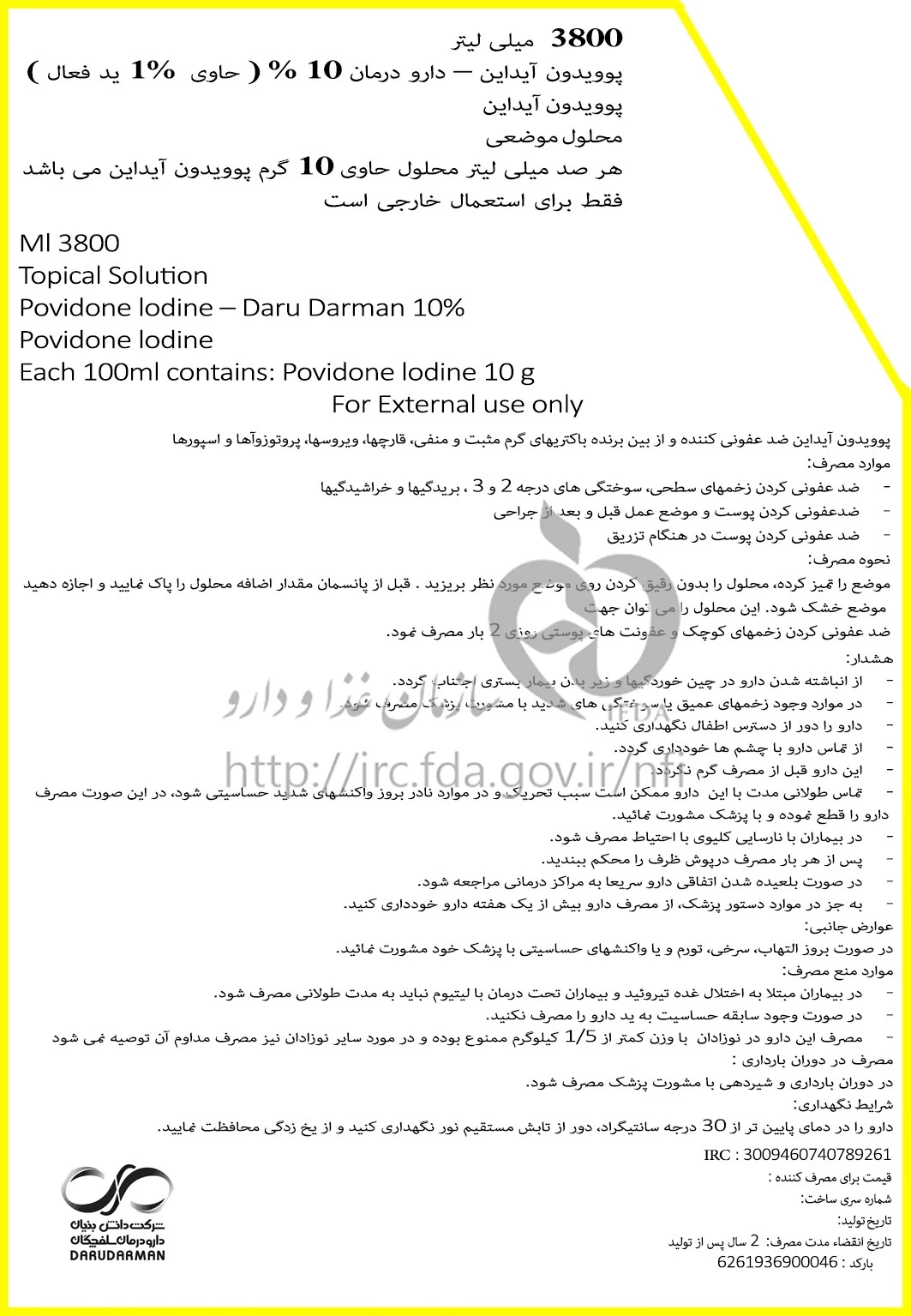 دکترها پوویدون آیداین - دارو درمان محلول موضعی 10 % 3800MILLILITER