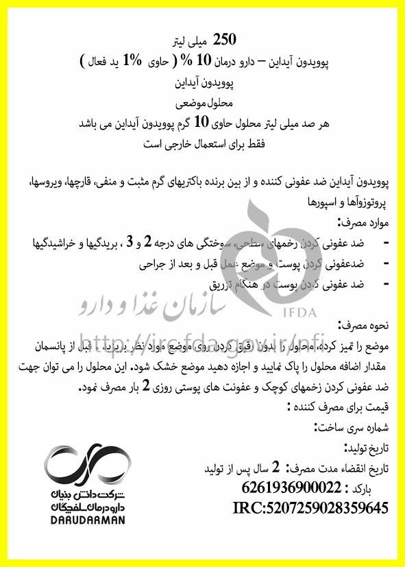 پوویدون آیداین - دارو درمان محلول موضعی 10 % 250MILLILITER