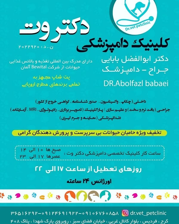 آدرس و شماره تلفن دامپزشکی دکتر وت